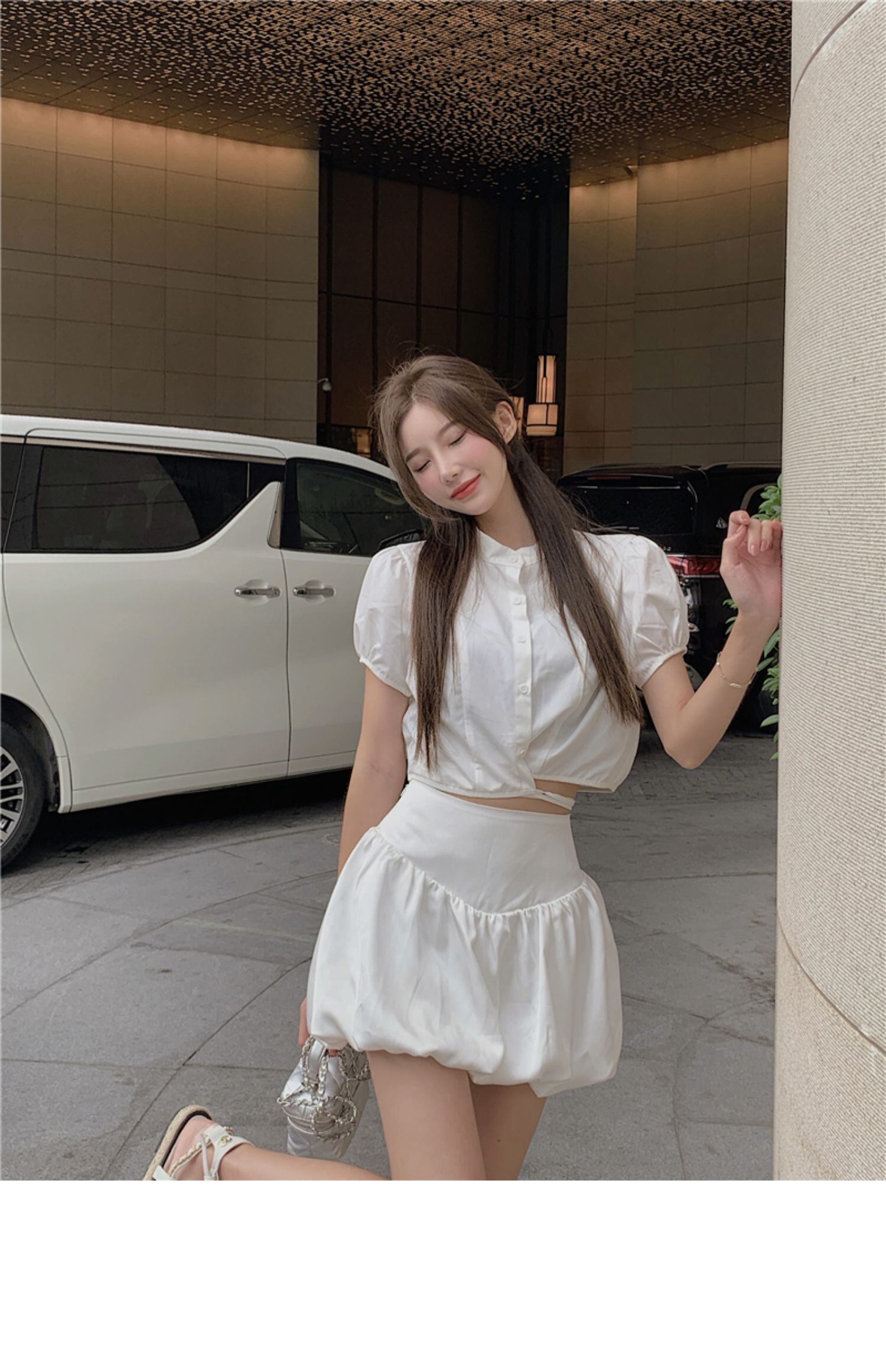 サマースタイルショートスリーブシャツ ハイウェストウェストショーツ スカート 大人ガーリー スウィート キュート カジュアル 夏物 ブルマー ドラファッションホール44930746103