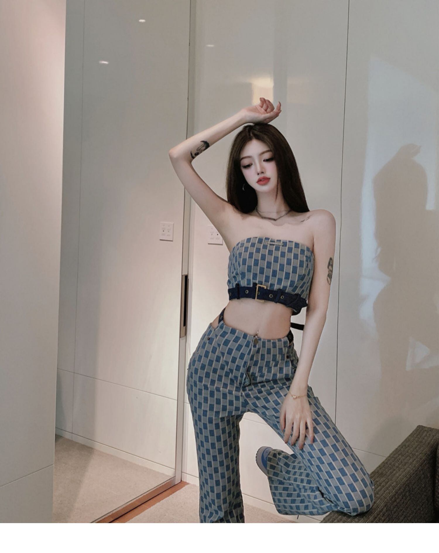 ベルト バックルウェスト格子柄トップス サマー レッド 夏物 ハーネス ドラファッションホール14018044015