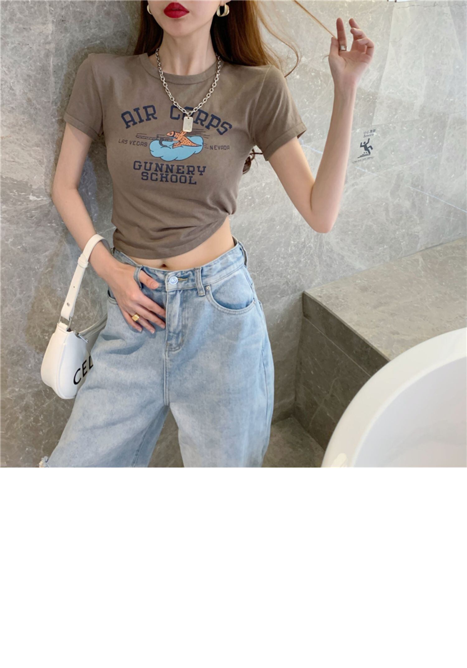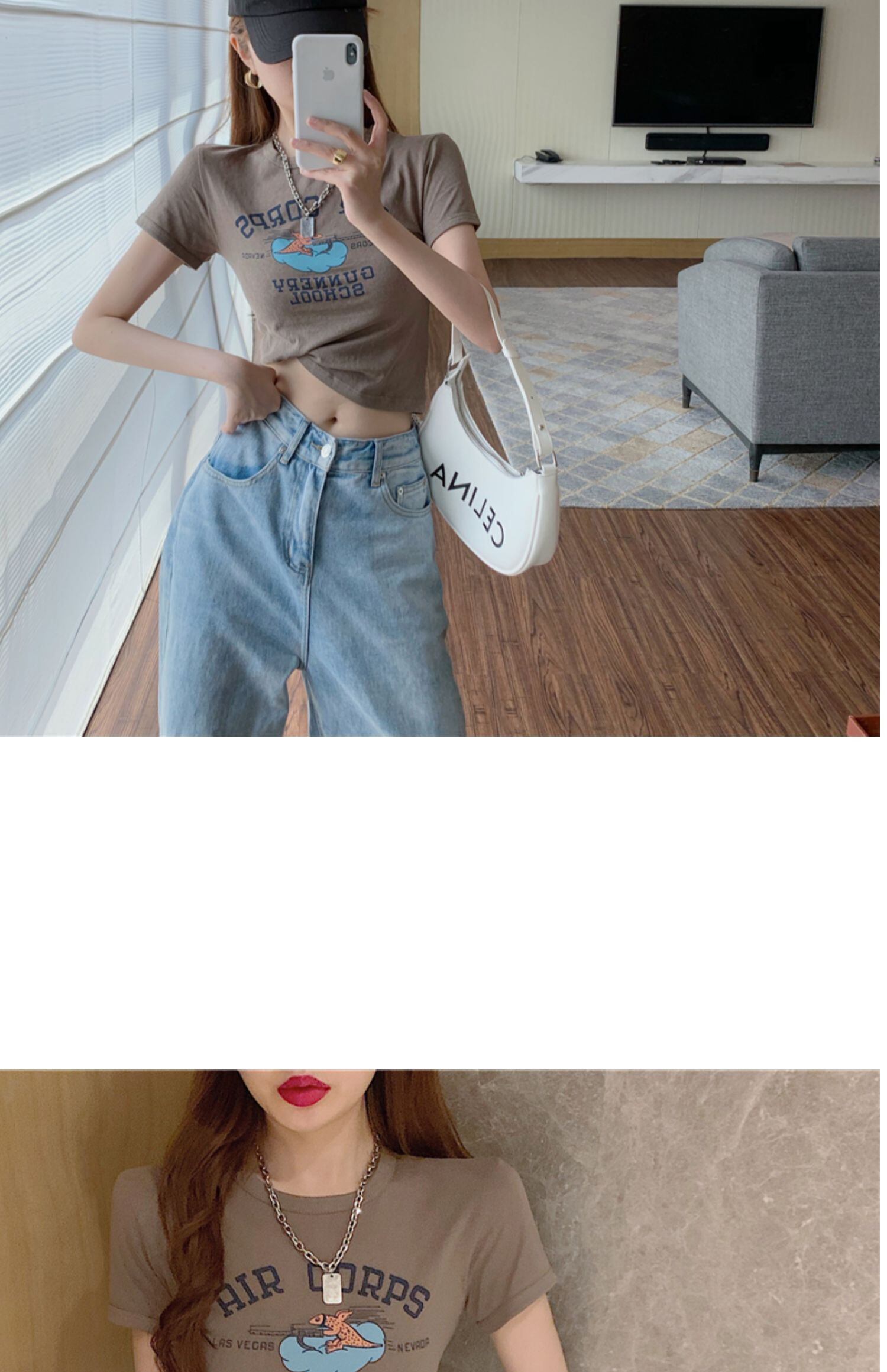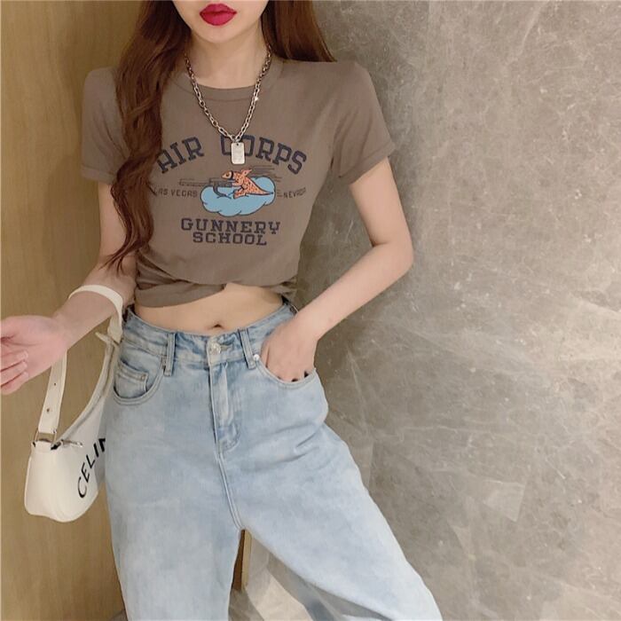 サマープリントショートレッドトップス スリムTシャツ レディース 夏物 ドラファッションホール55139767605