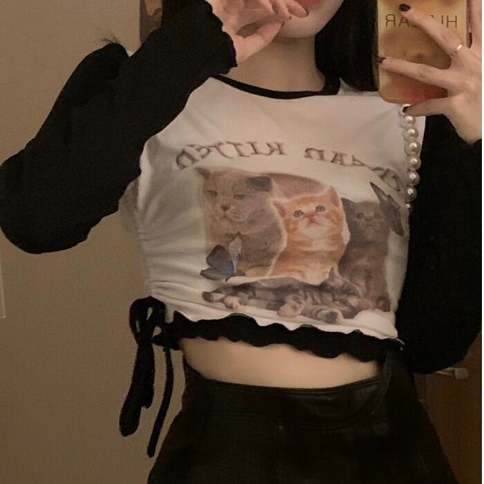 スタンダードギャザーTシャツ ショートトップス レディース ロング レトロ ステッチ ドラファッションホール72272197605