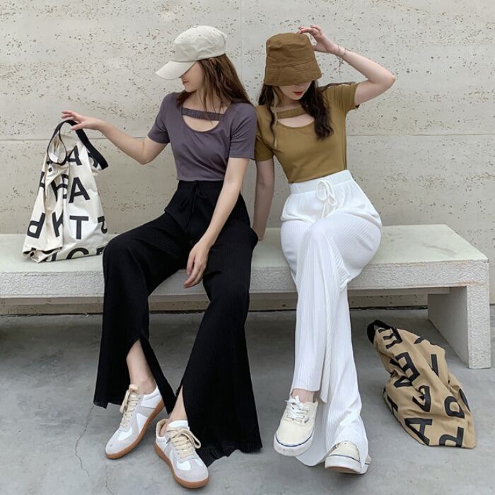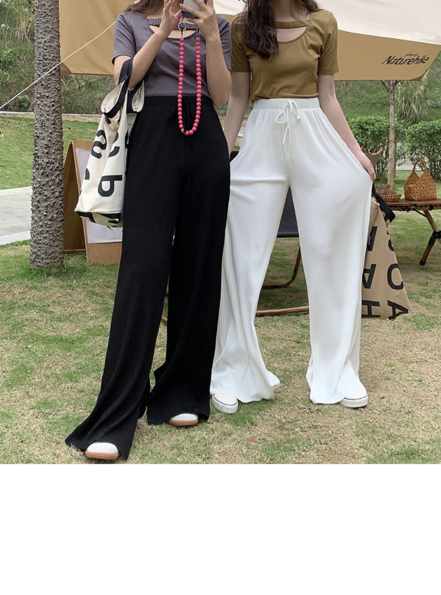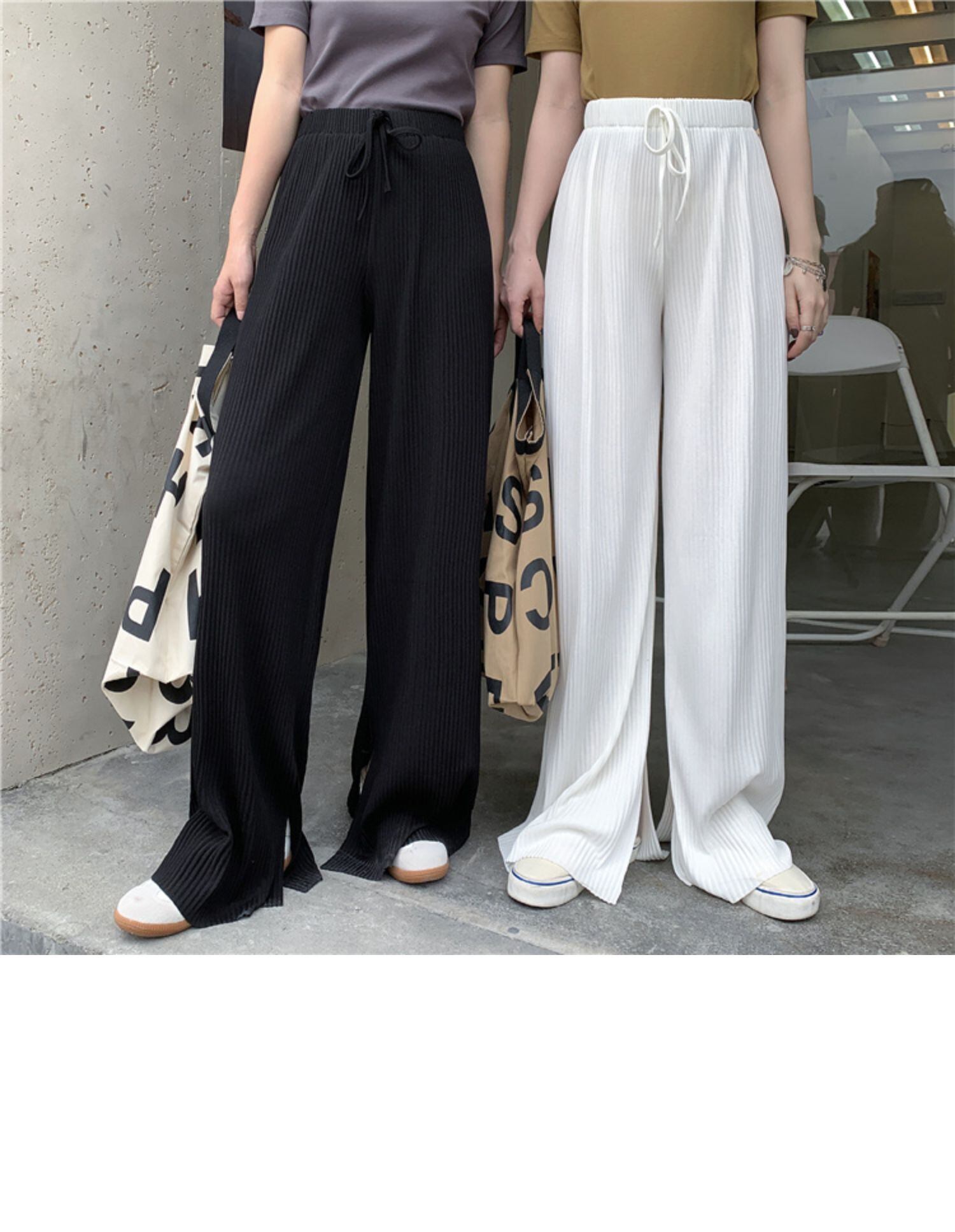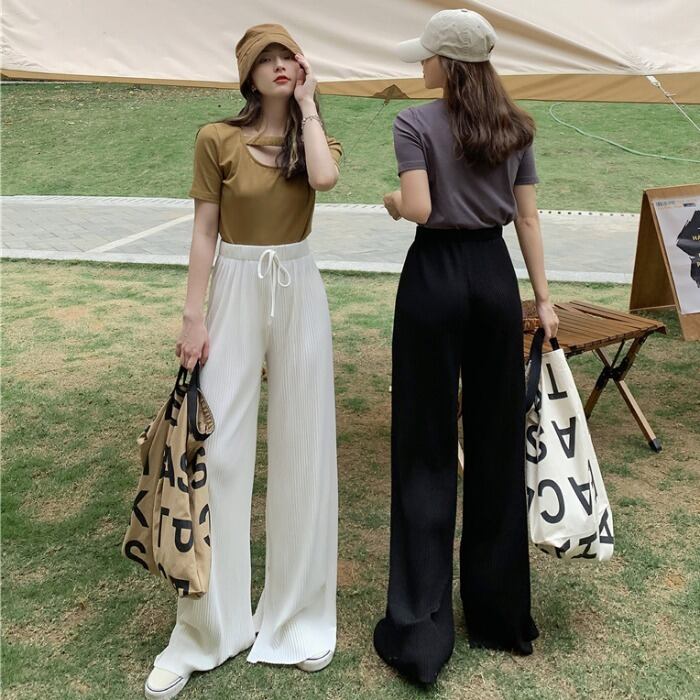 パンツ サマースタンダードハイウェストウェストワイドレッグルーズ薄手カジュアル レトロ 夏物 ワイドパンツ ドラファッションホール97714635796