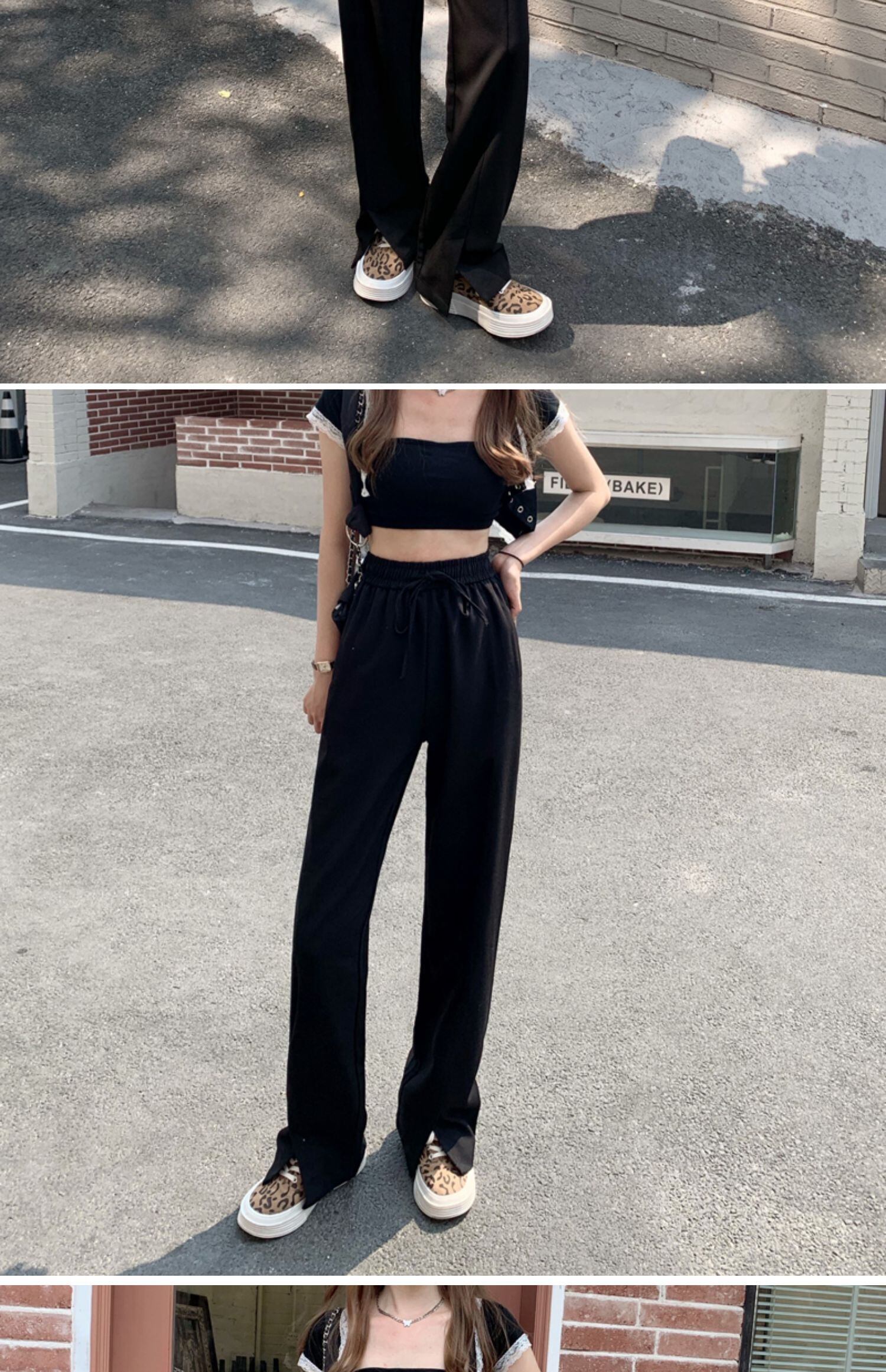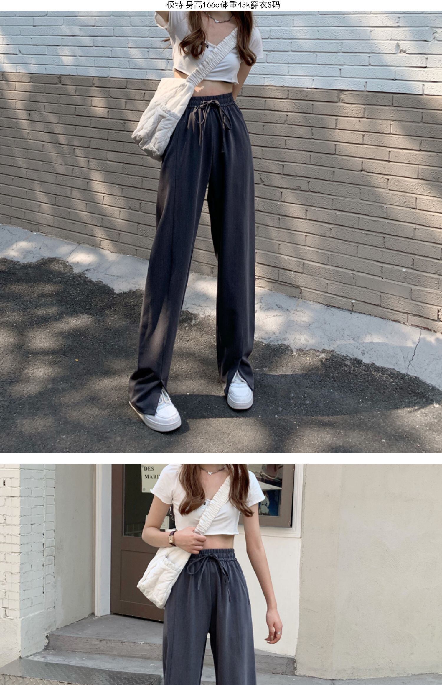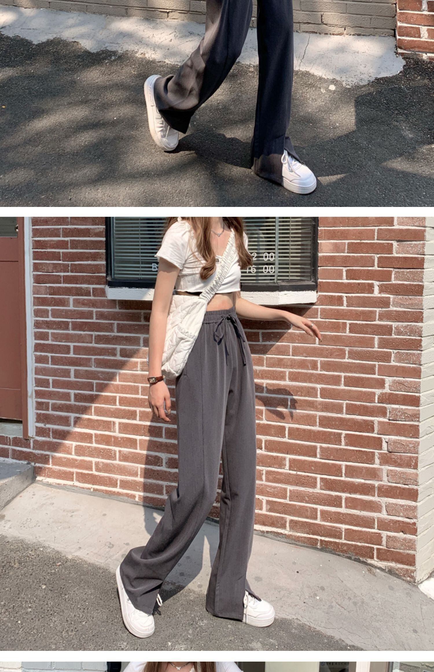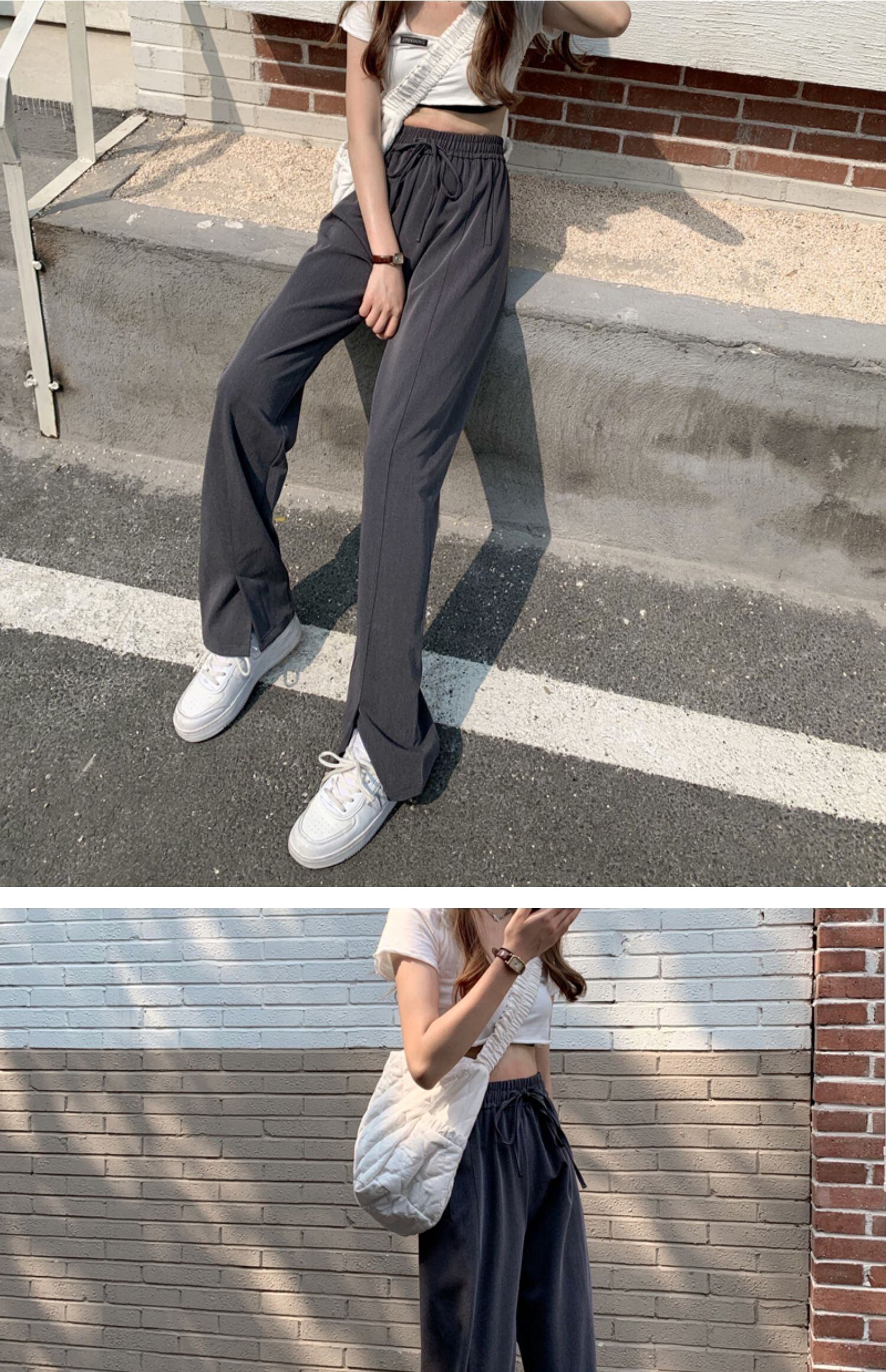 パンツ レディーススプリングサマーハイウェストウェストストレッチルーズスリットワイドレッグ エラスティック 伸縮 春物 夏物 ワイドパンツ ドラファッションホール37557573405