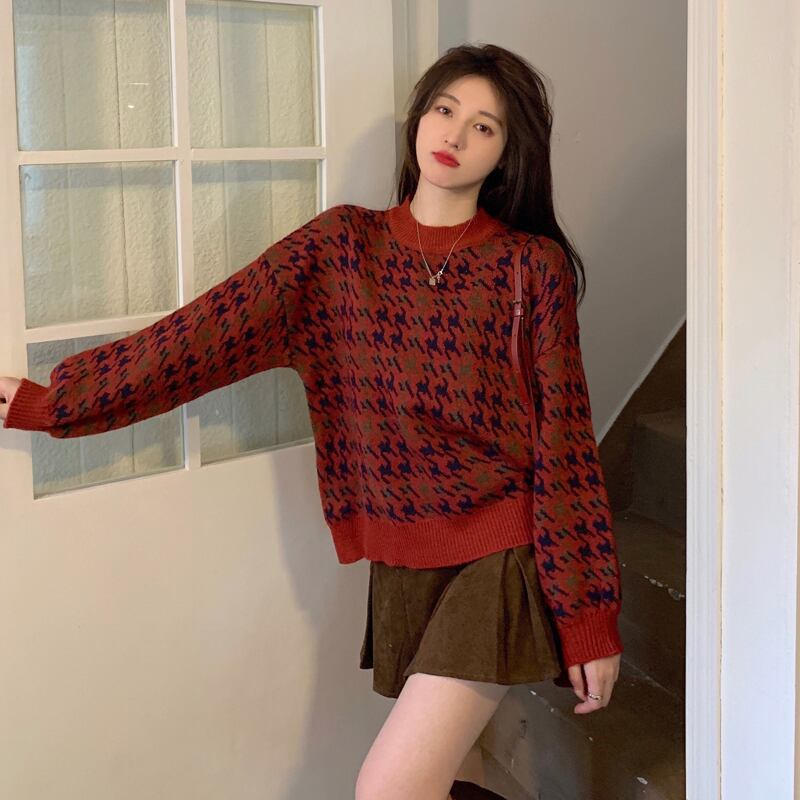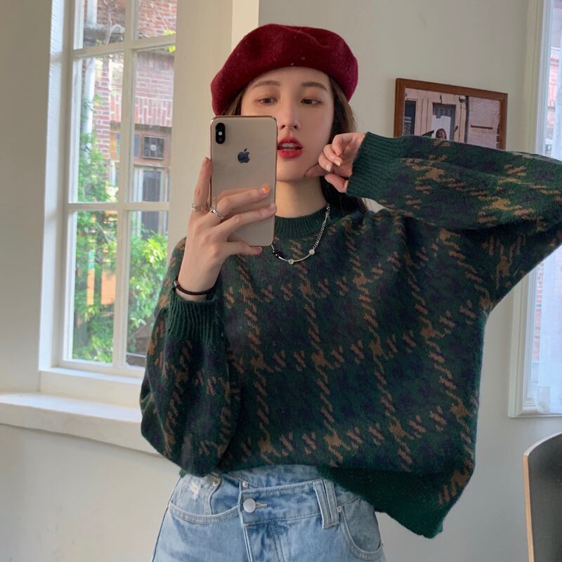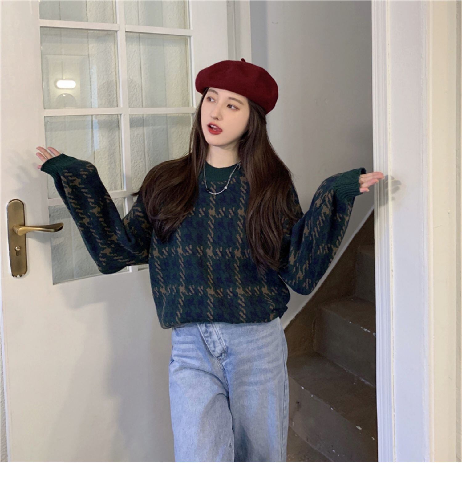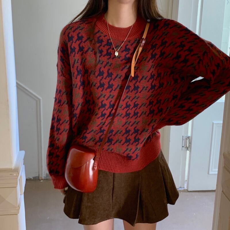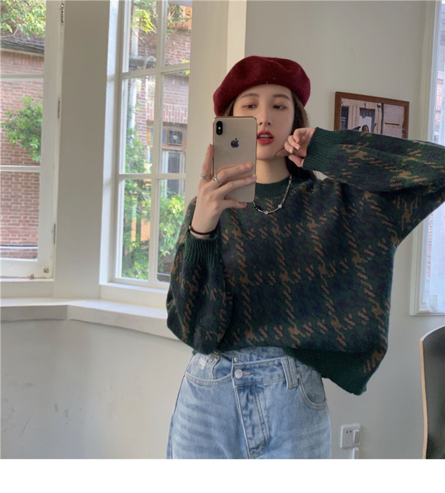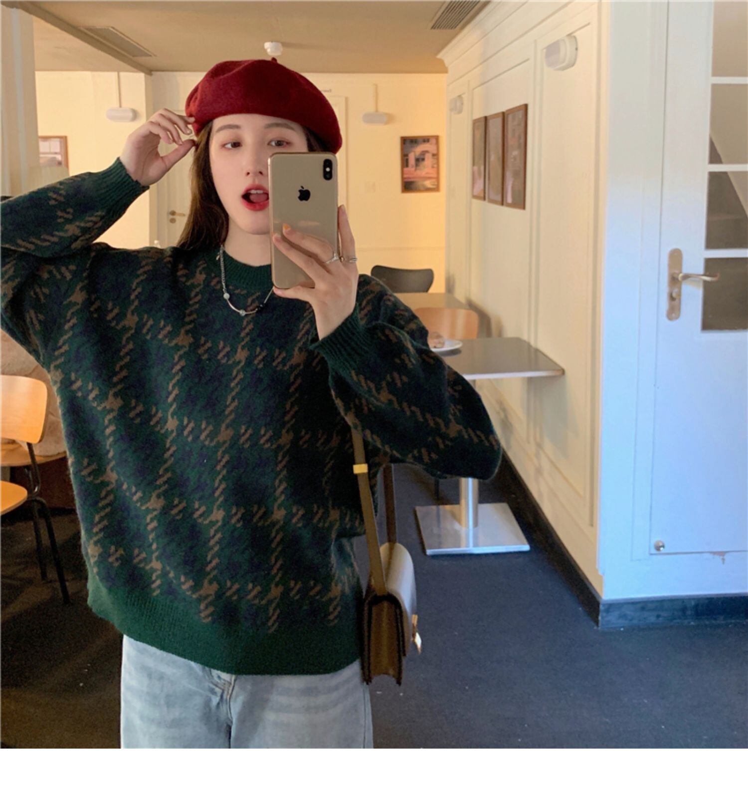 スタンダードルーズスタイルセーター プルオーバー ブラウス レディース ロング レトロ ウィンター 冬物 ドラファッションホール60552465770