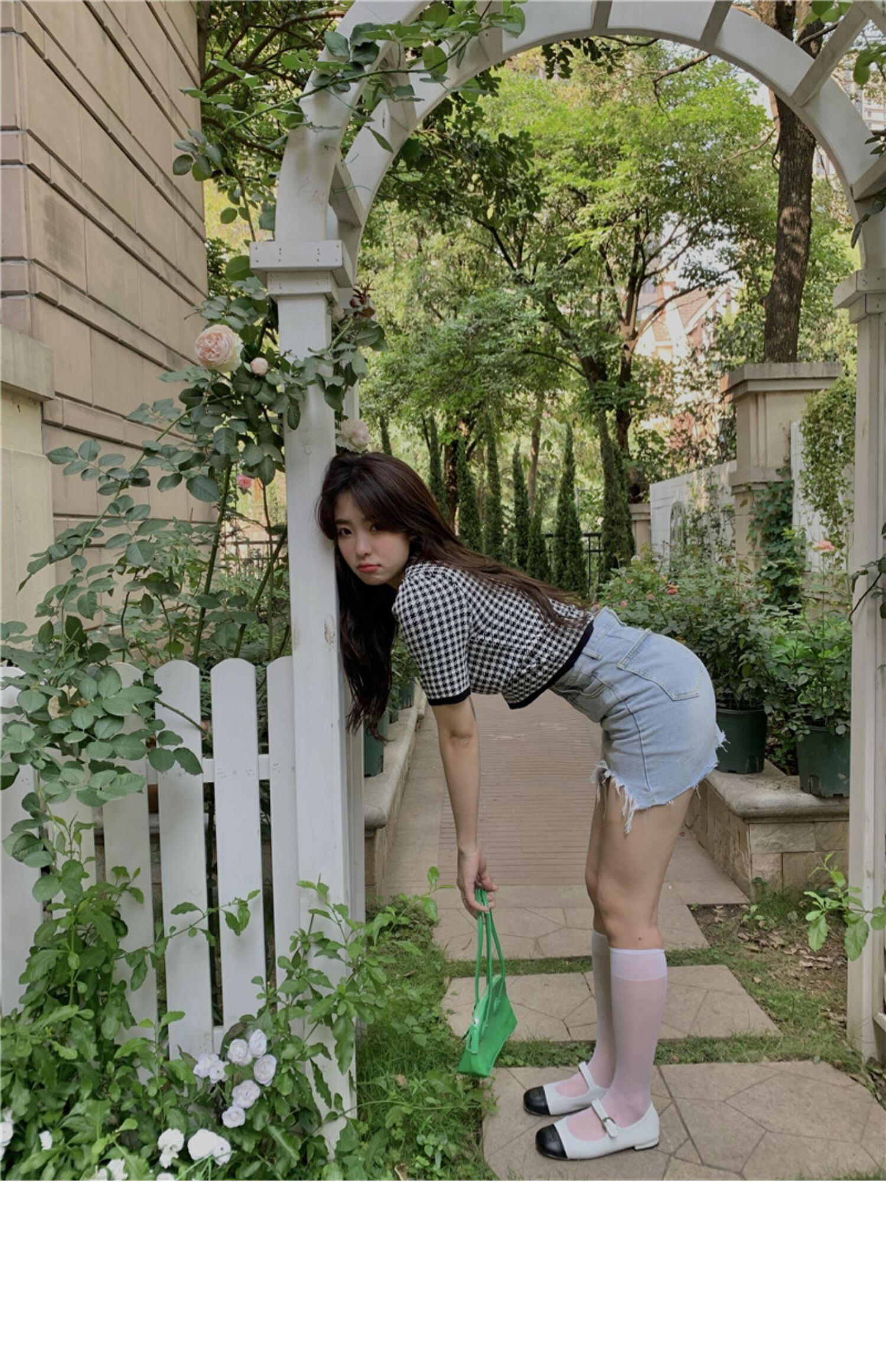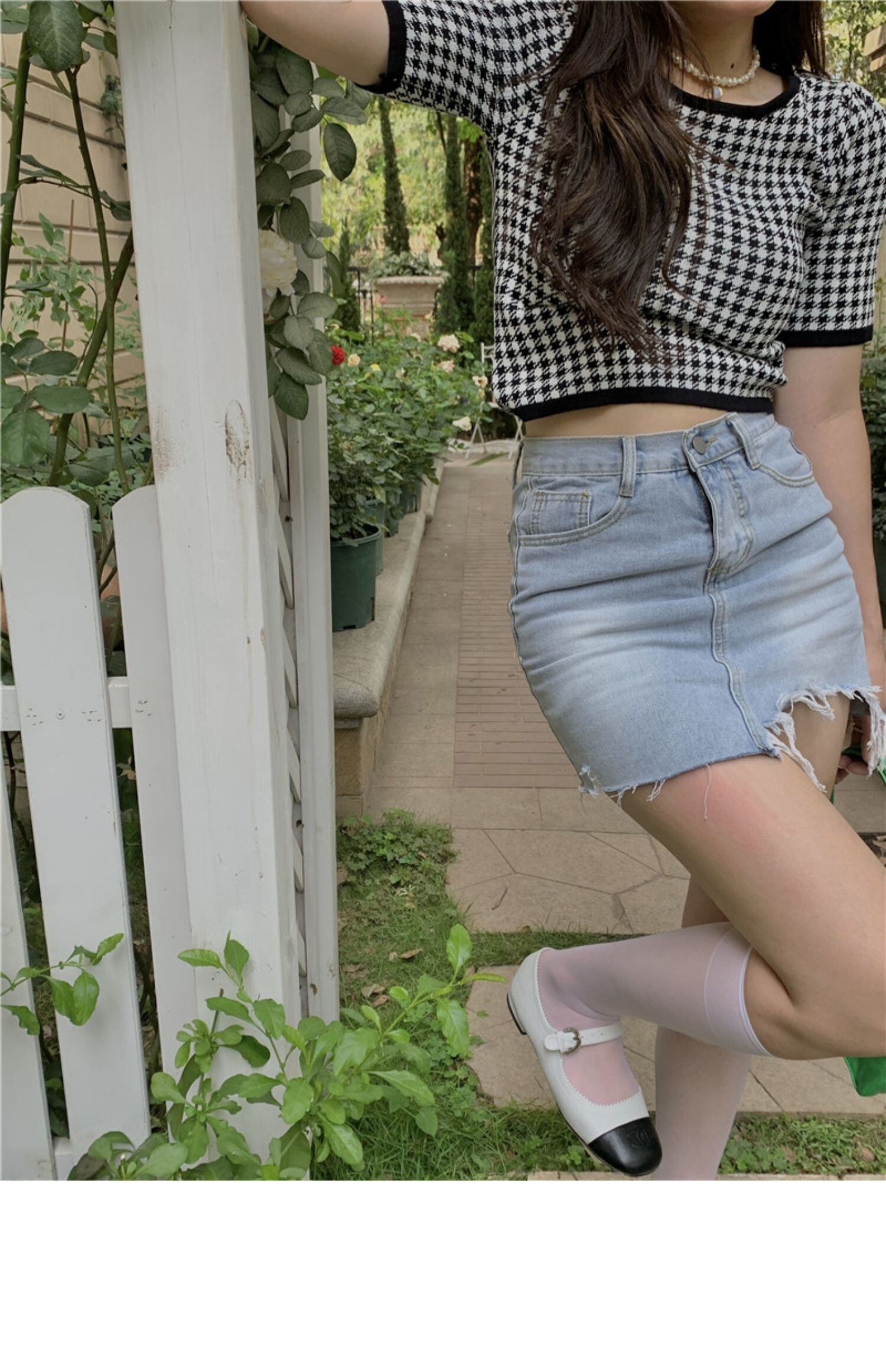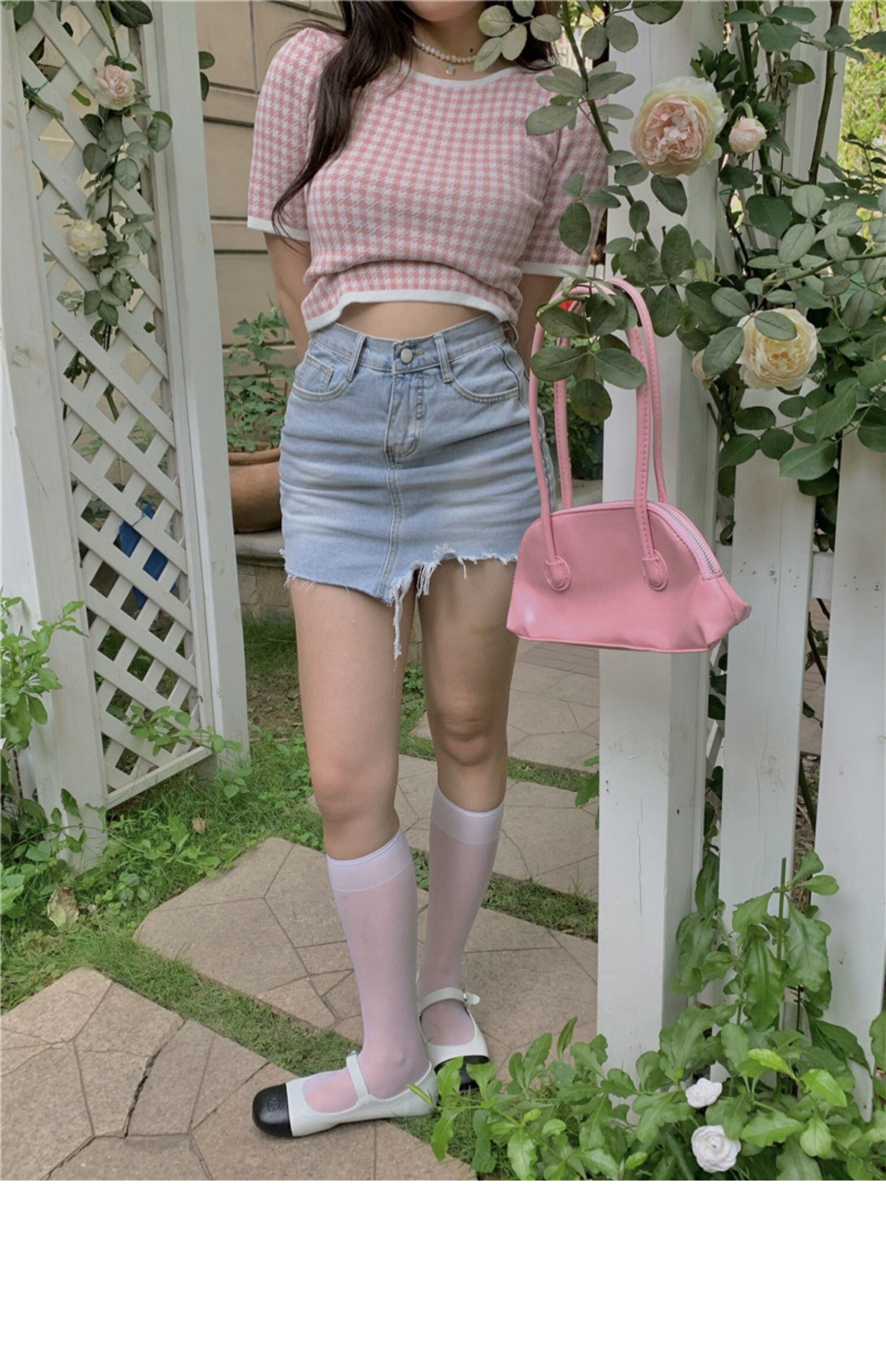 サマースタンダード格子柄ショート薄手ニットセーター レッドトップス レディース レトロ 大人ガーリー スウィート キュート カジュアル 夏物 ドラファッションホール1396966852