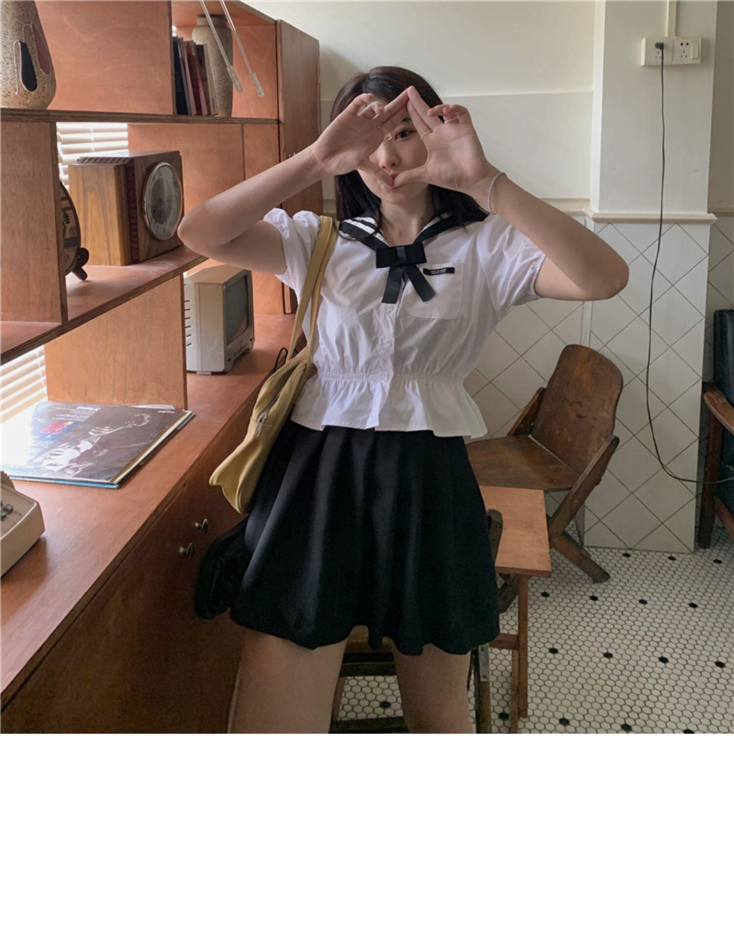 サマーリボンシャツ ハイウェストプリーツスカート 夏物 ドラファッションホール72249732774