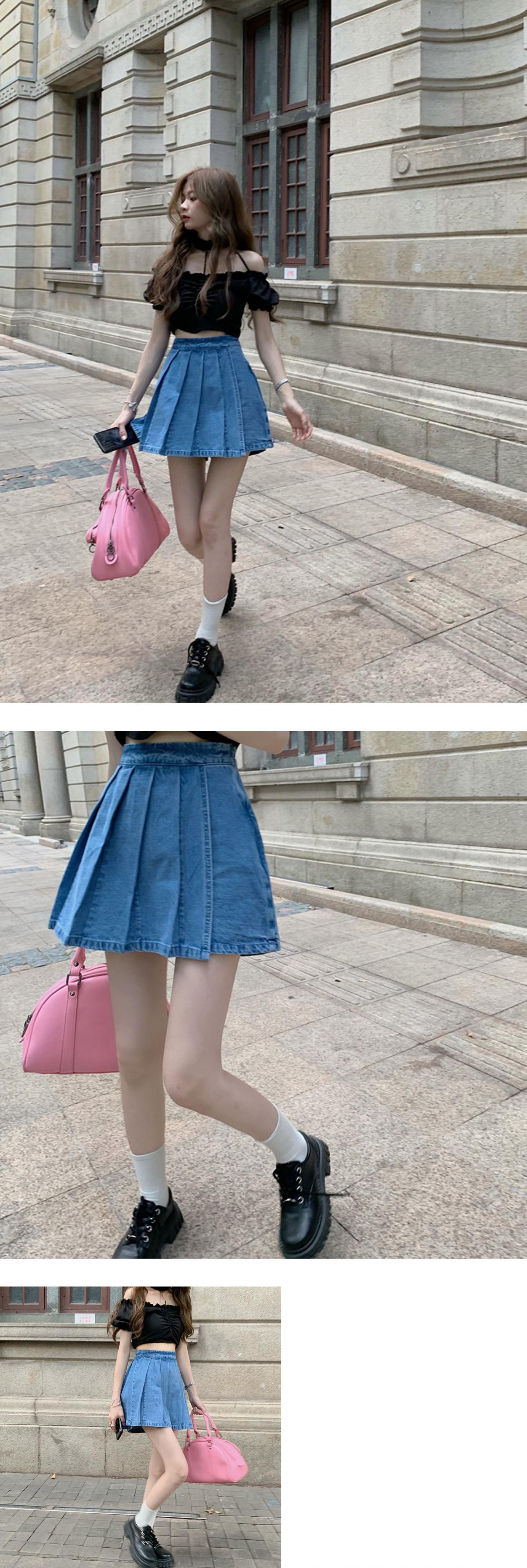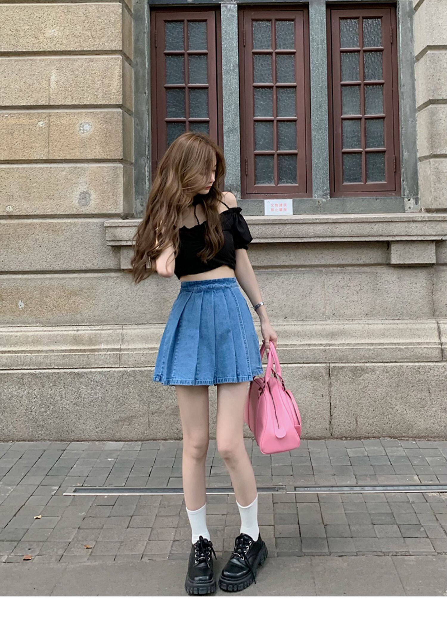 カジュアルスタンダードプリーツAラインショートスカート ハイウェストウェスト薄手サマー レトロ 夏物 ドラファッションホール69297228167