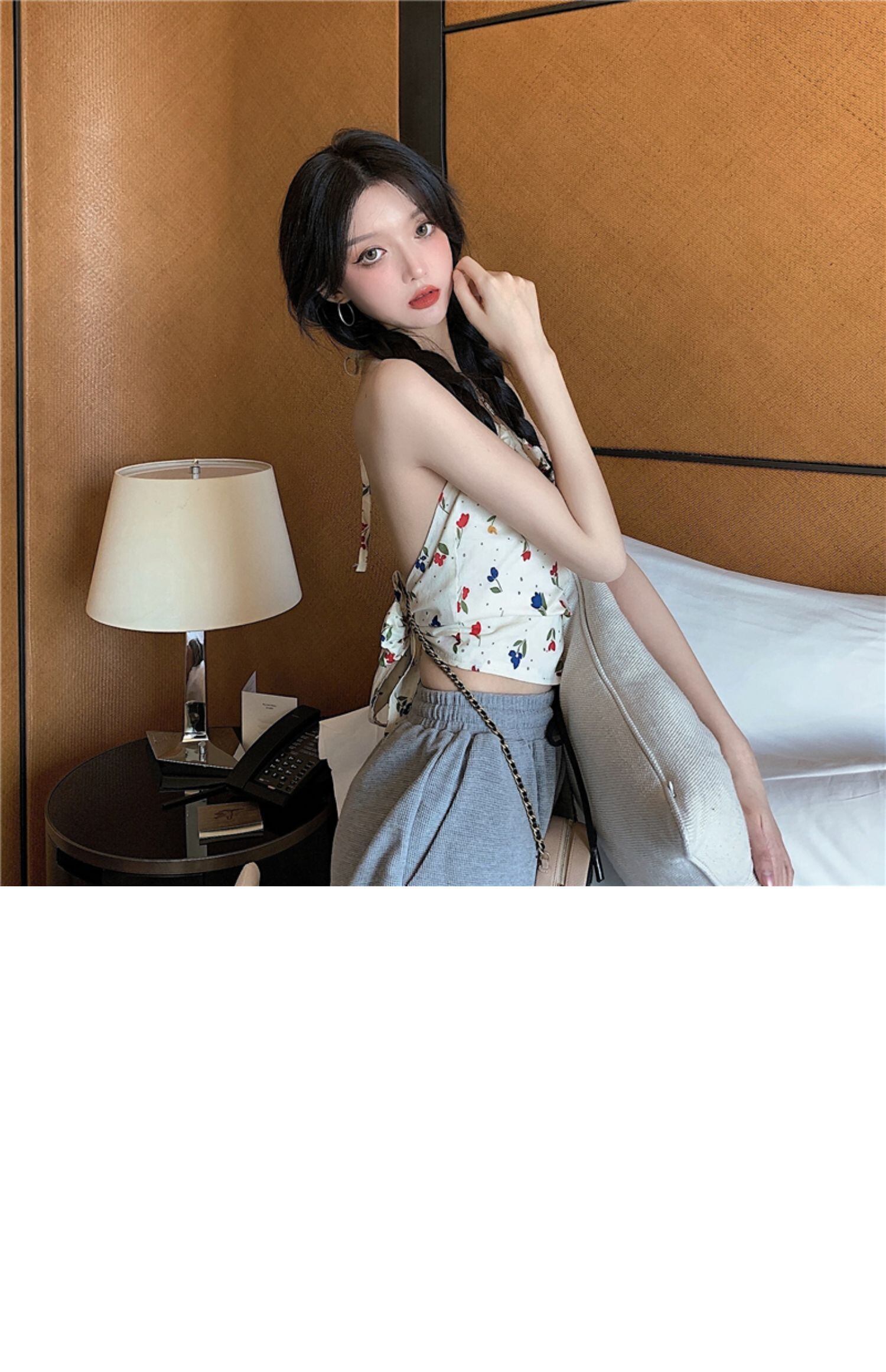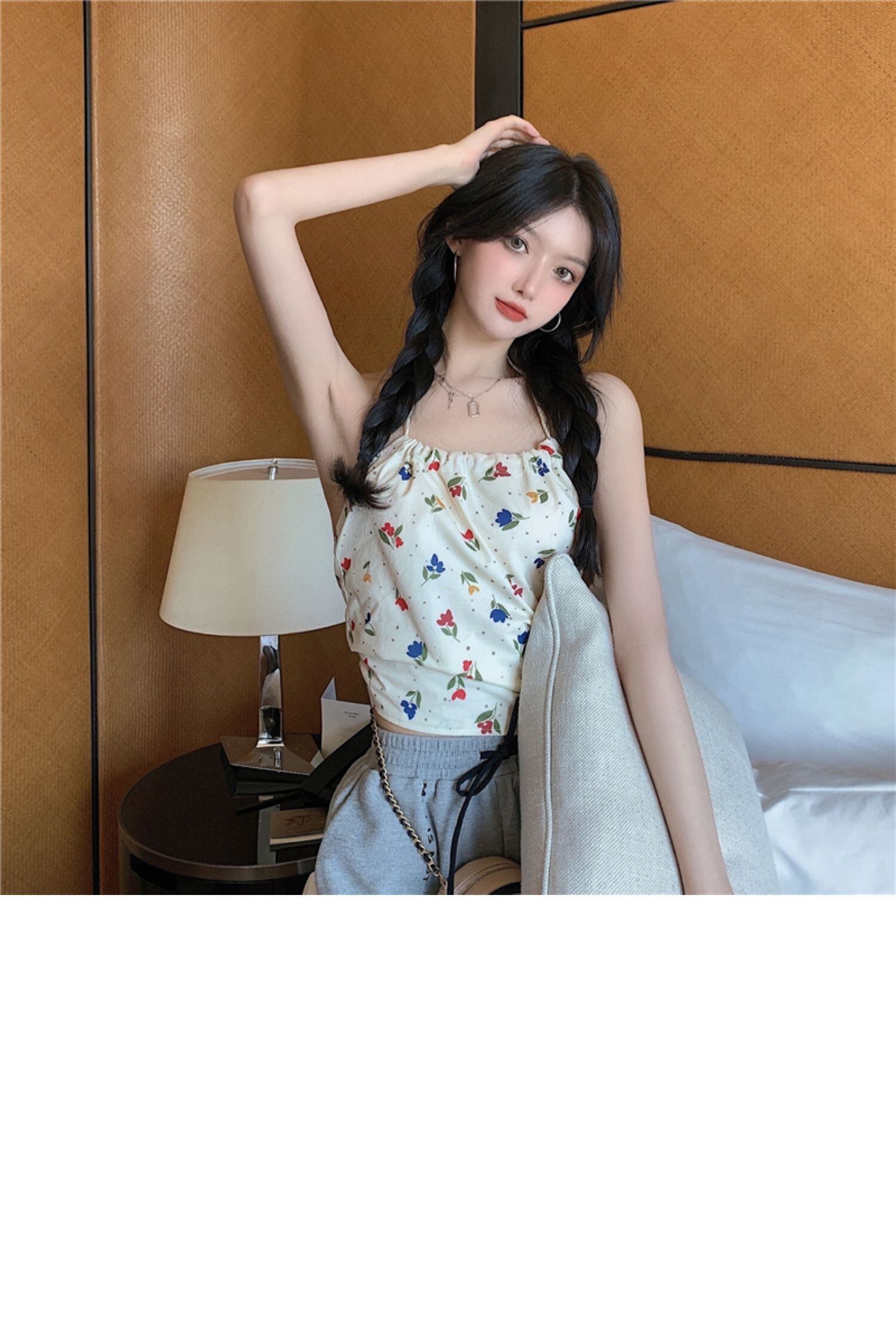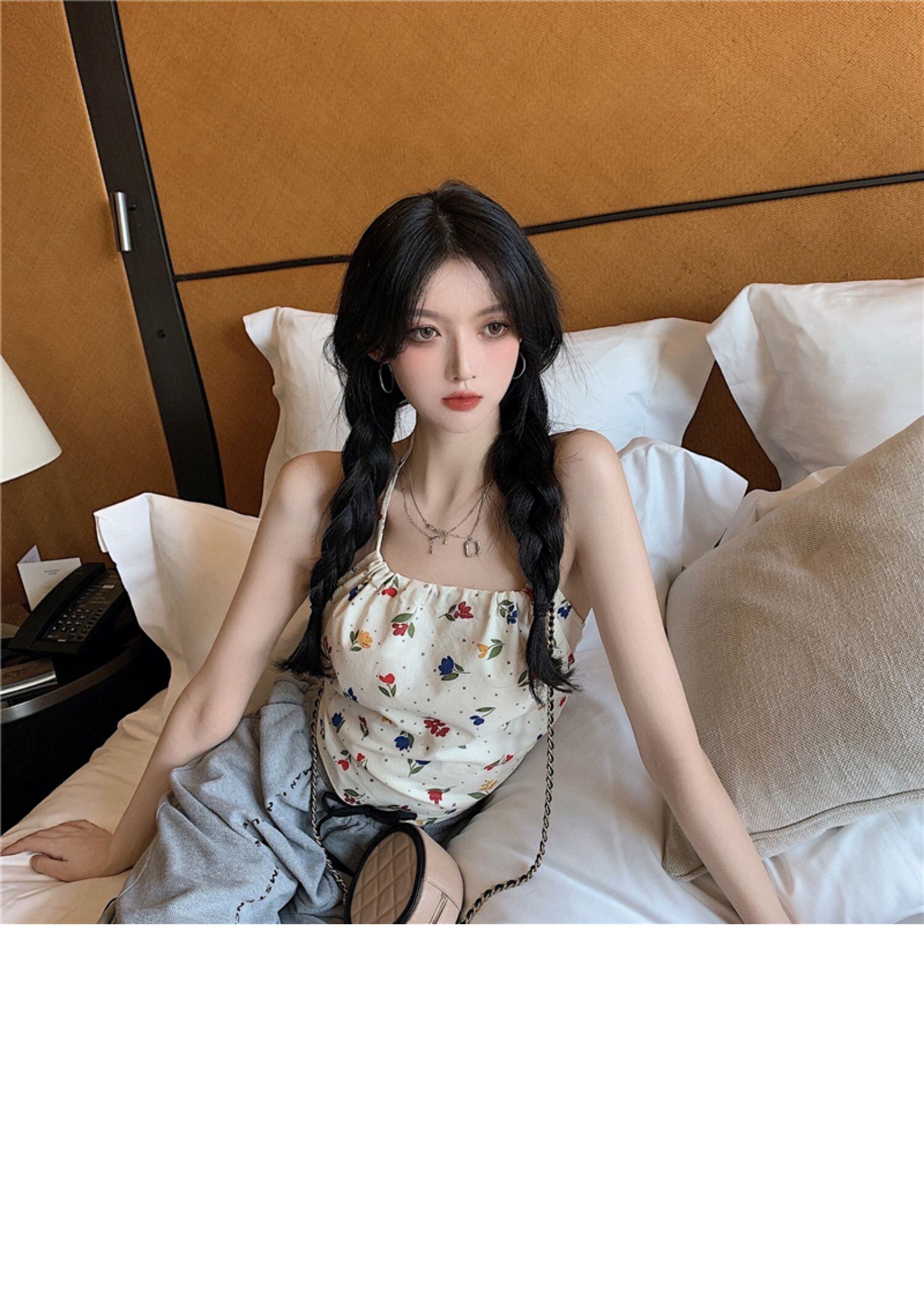 サマースタイルスタンダードホルタートップス ギャザーレディース レトロ 夏物 フラワーデザイン ドラファッションホール310616031