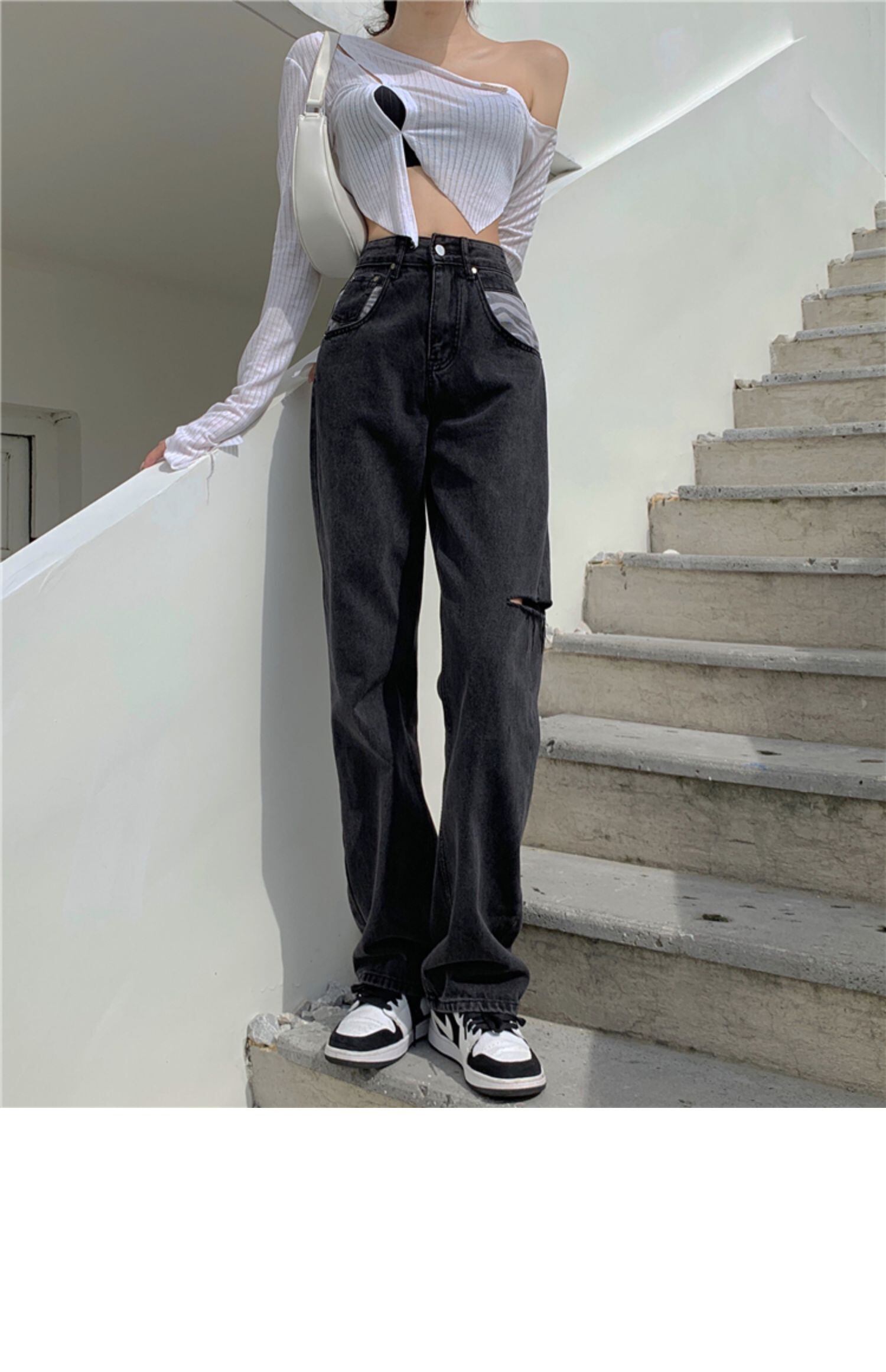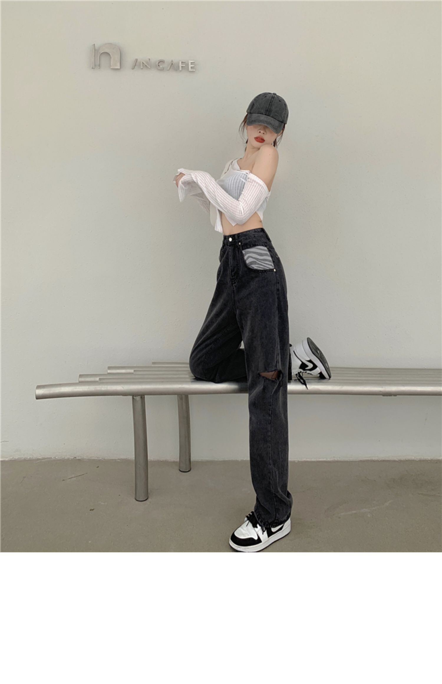 サマースタンダードジーンズ ハイウェスト薄手 レトロ 夏物 ドラファッションホール74005089689