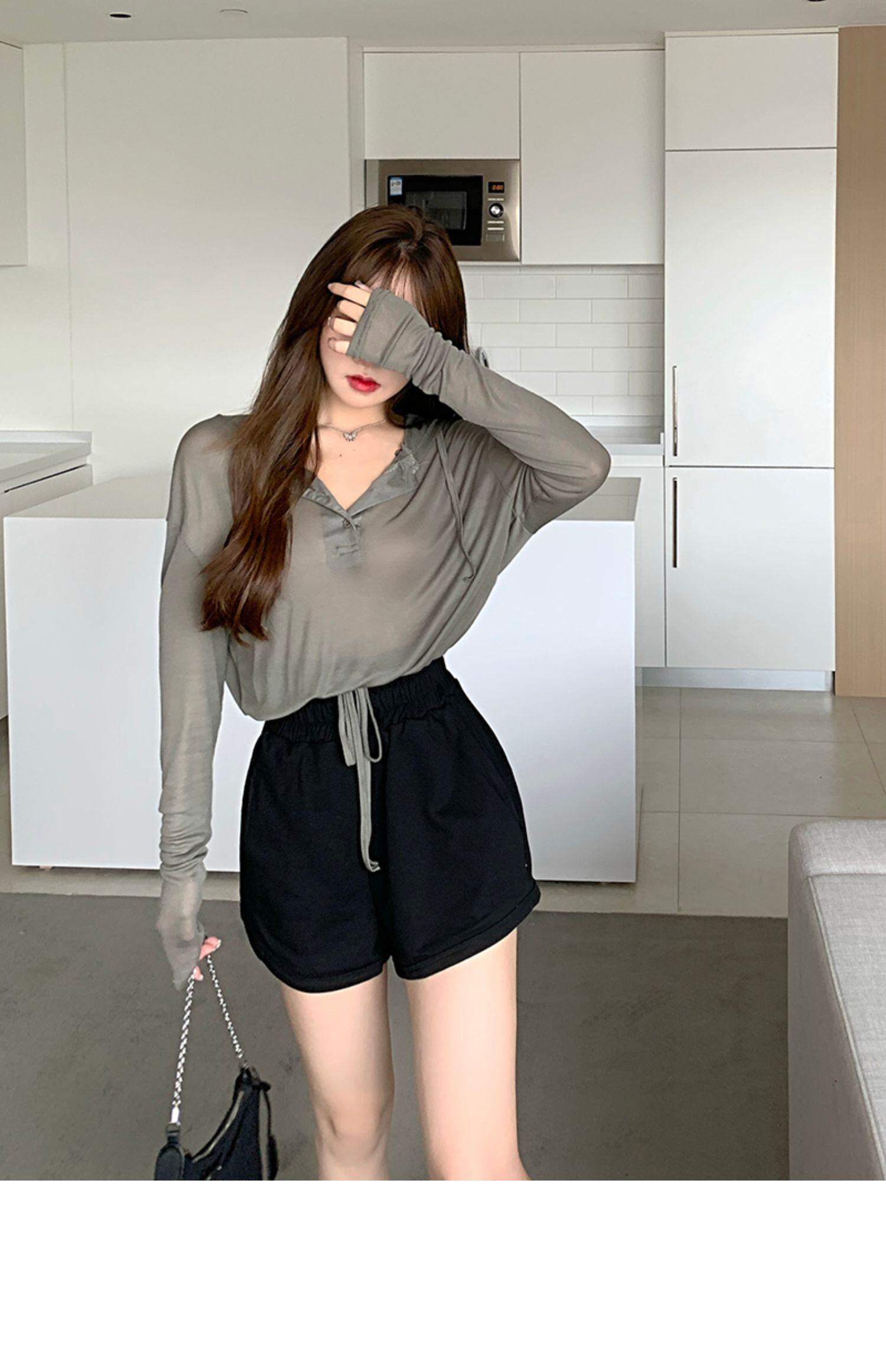 レディースサマースタイルフード薄手トップス ショーツ ロング 夏物 ブルマー ドラファッションホール98787065065
