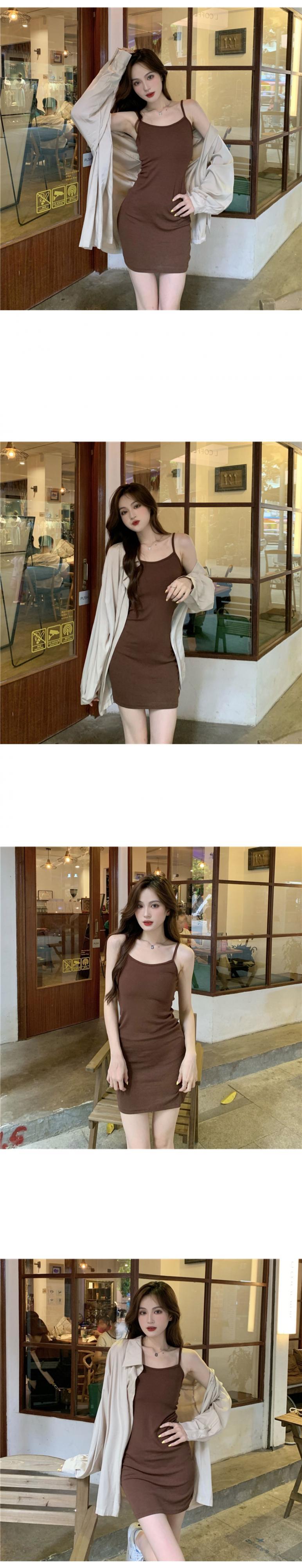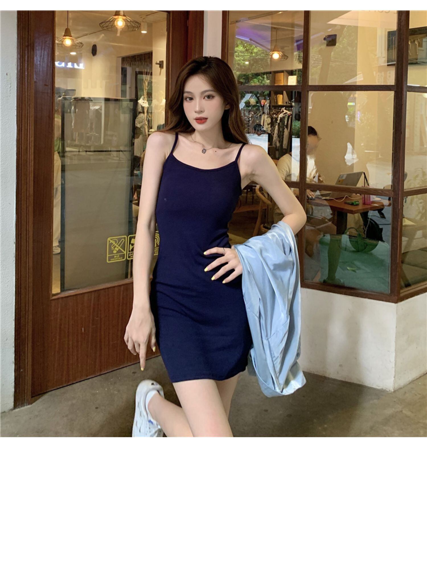 色:青いシャツ,アプリコットシャツ,青い服,カーキストラップドレス