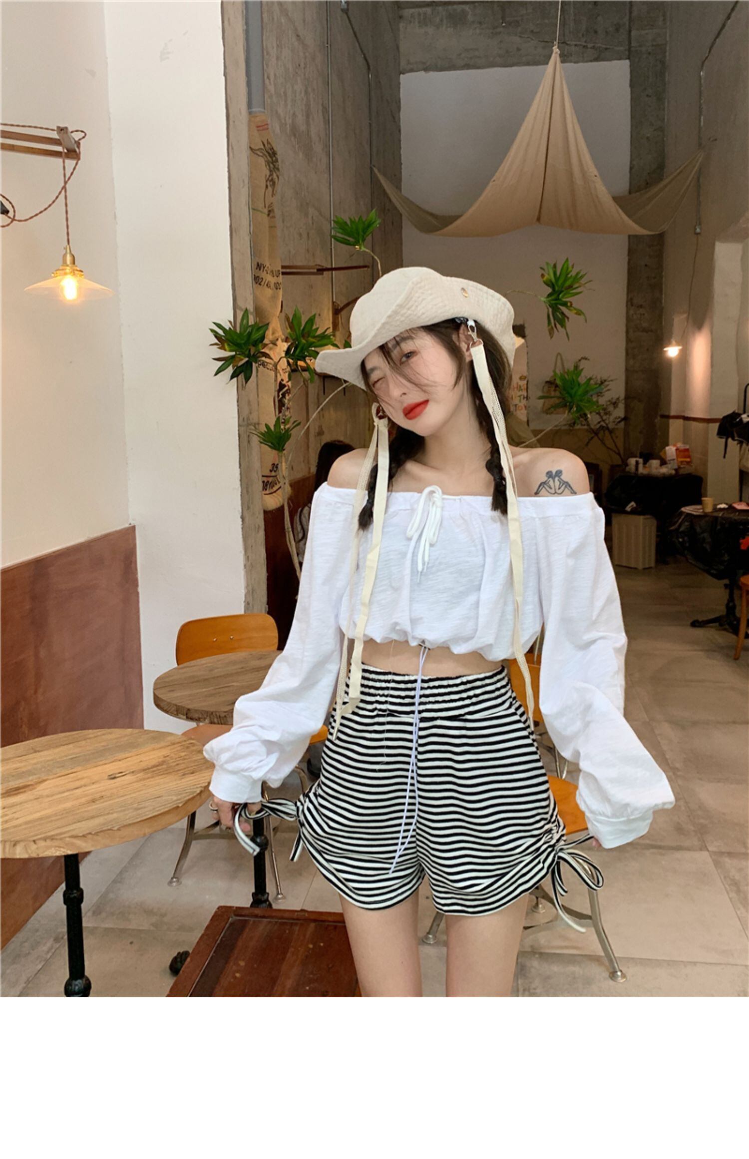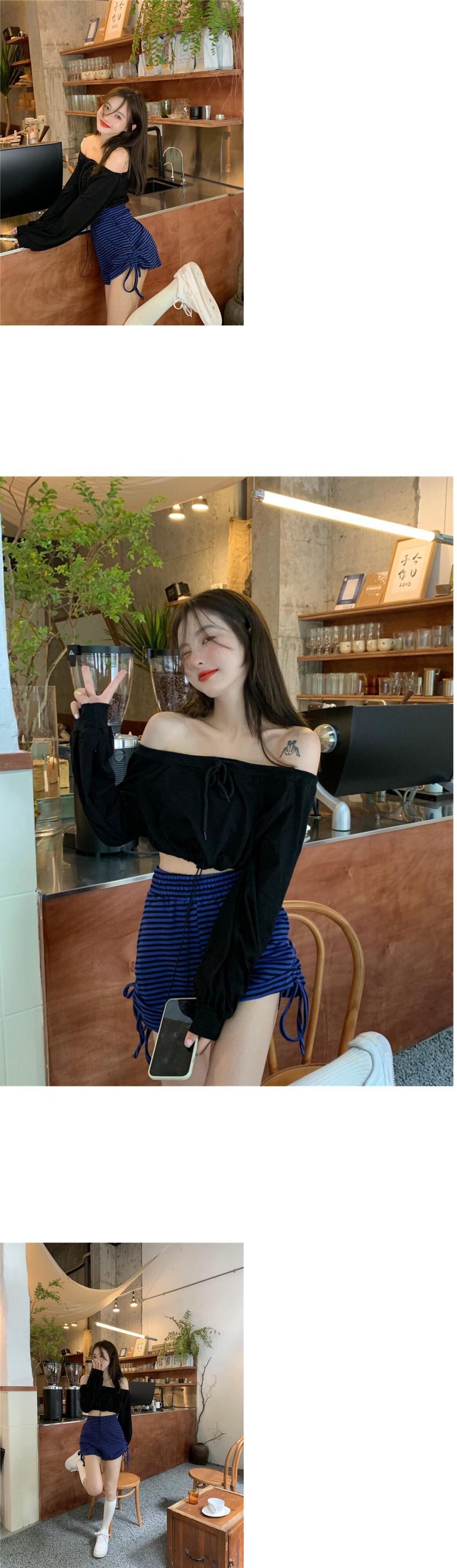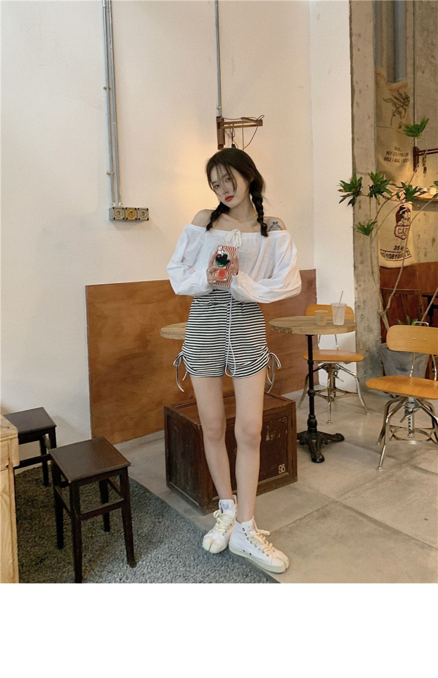サマースタイルTシャツ ストライプギャザーショーツ ロング ストリート 夏物 ブルマー ドラファッションホール27327158122