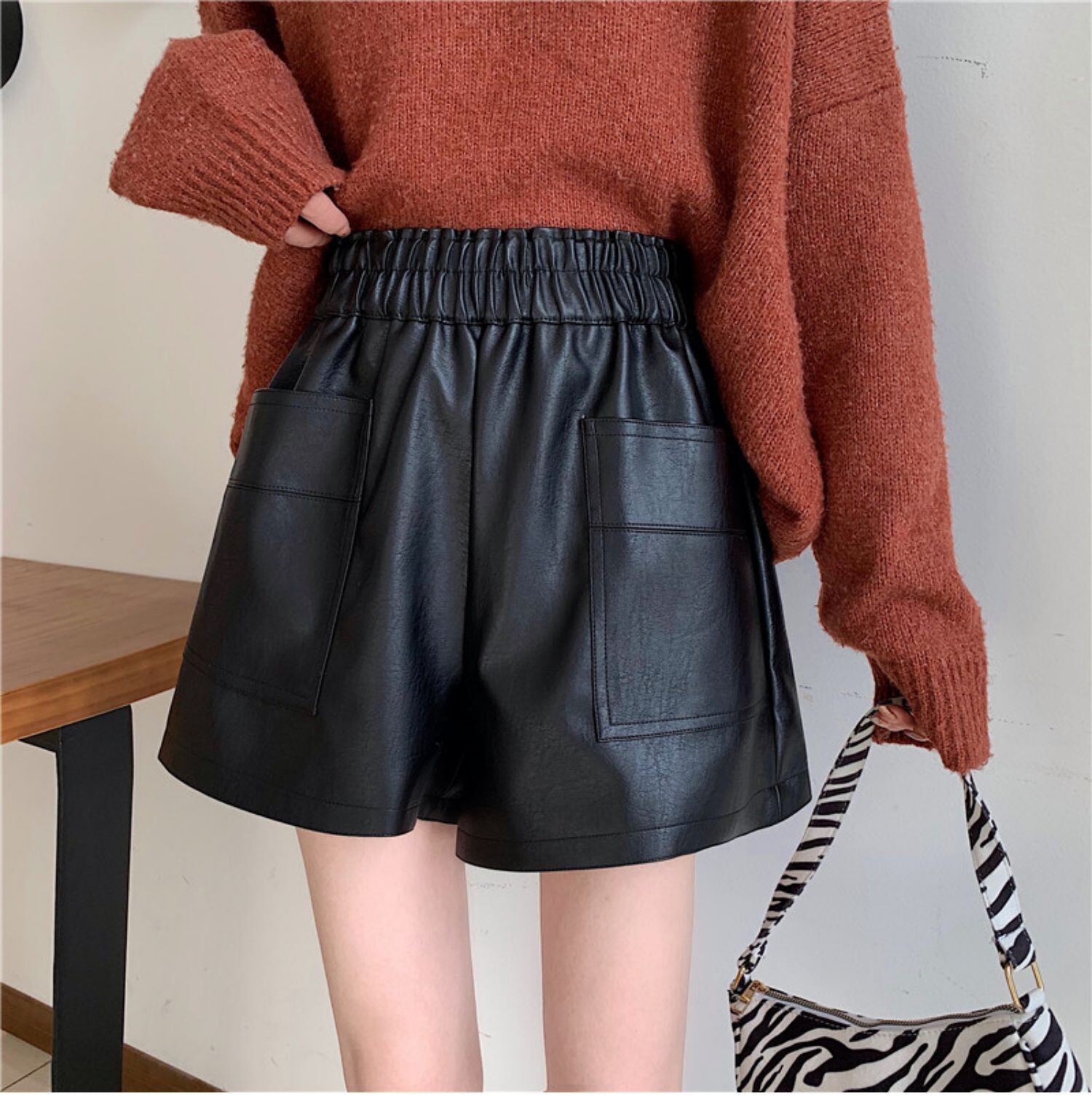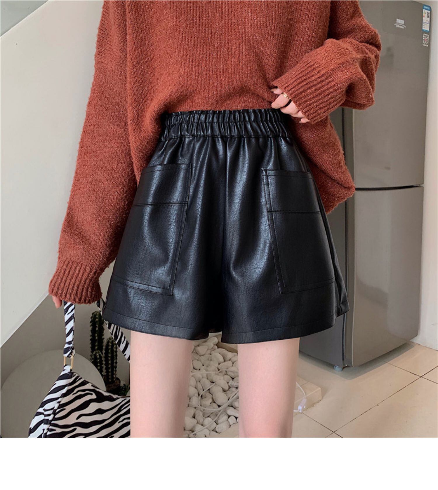 オータムルーズ薄手ハイウェストレザーショーツ レギンス 秋物 ブルマー ドラファッションホール4863545406